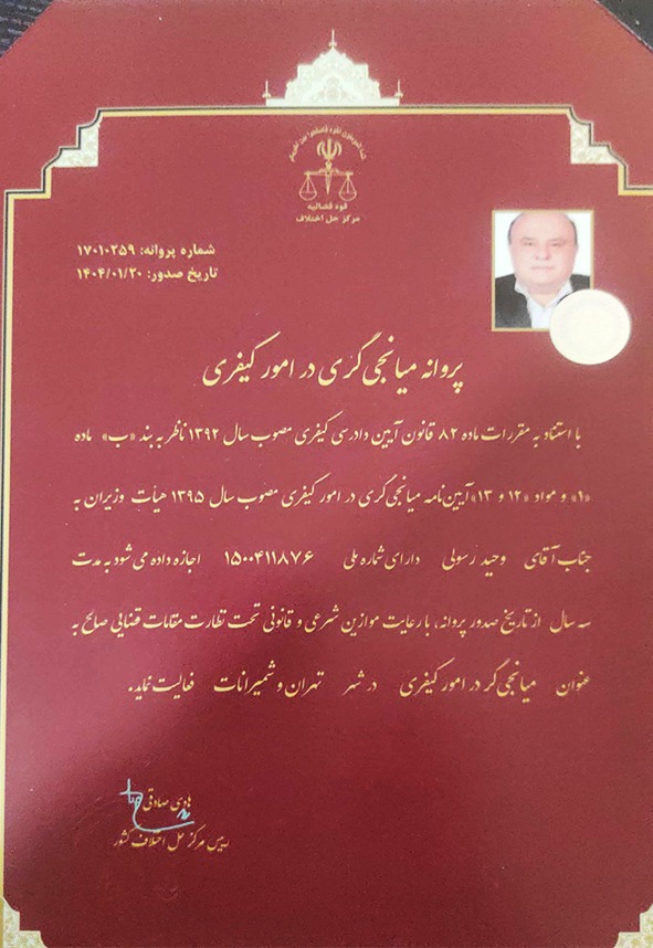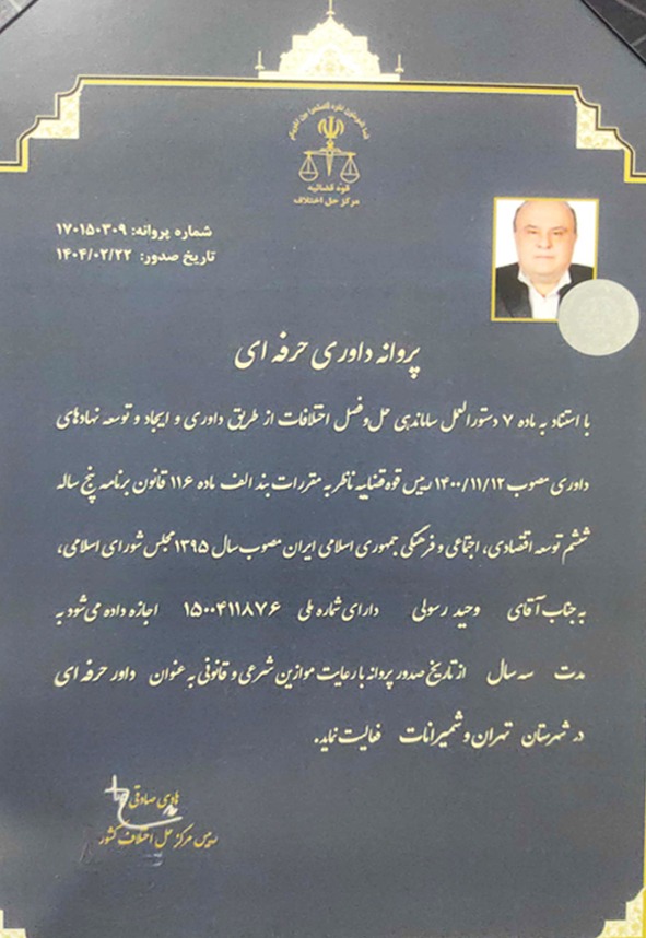 راهنمایی و نهایتاً حل و فصل دعاوی حقوقی به صورت داوری یا مذاکره.